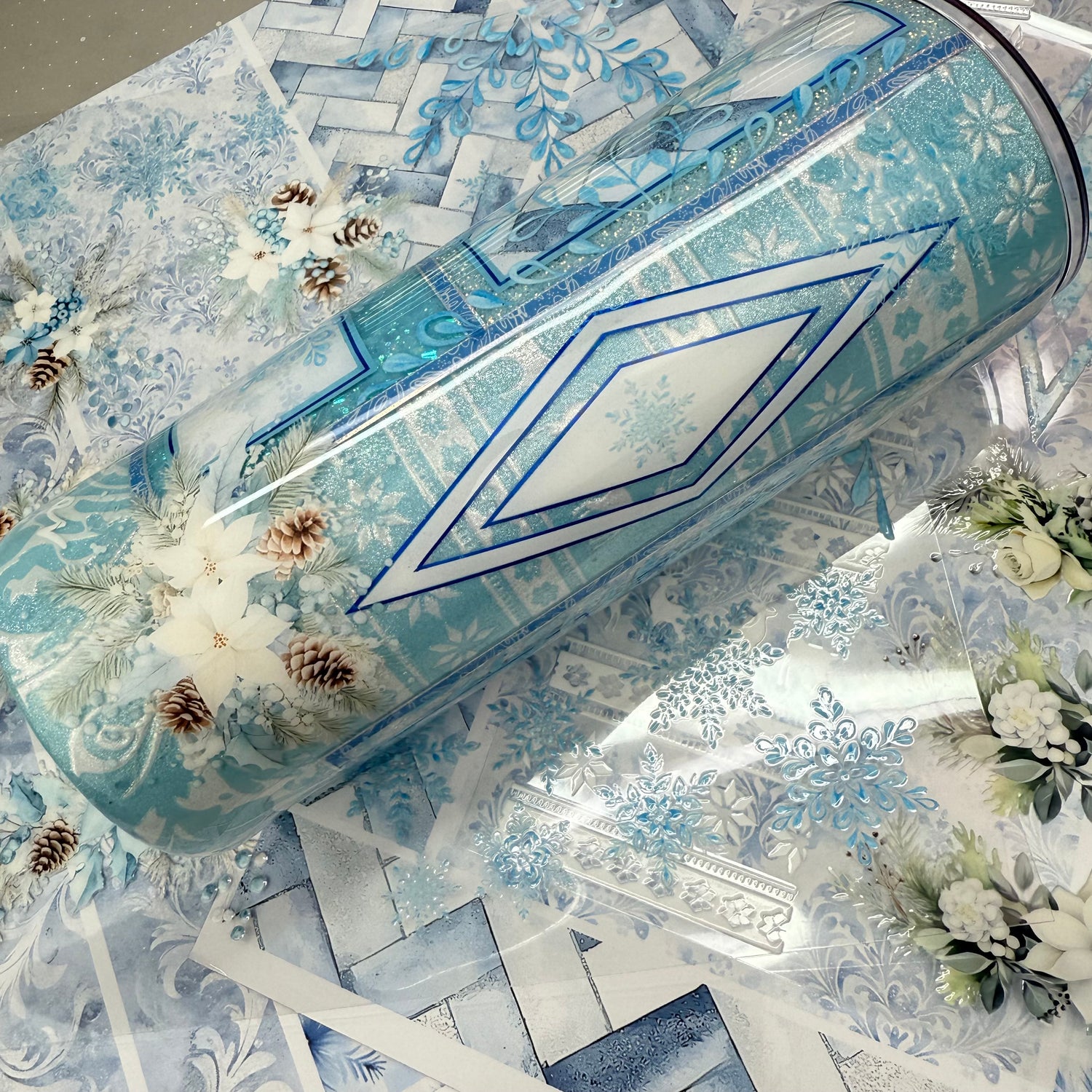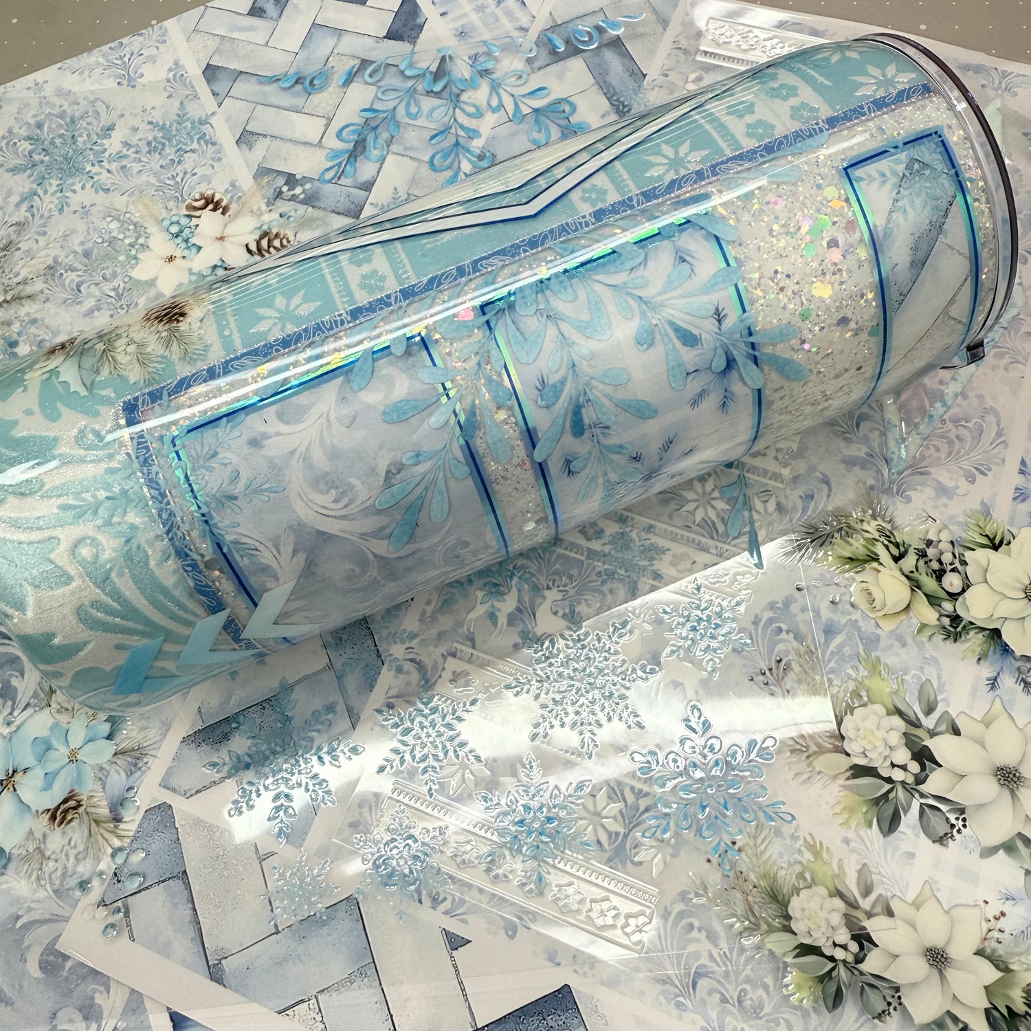 Three Blue Snowflakes Sectioned Vinyl