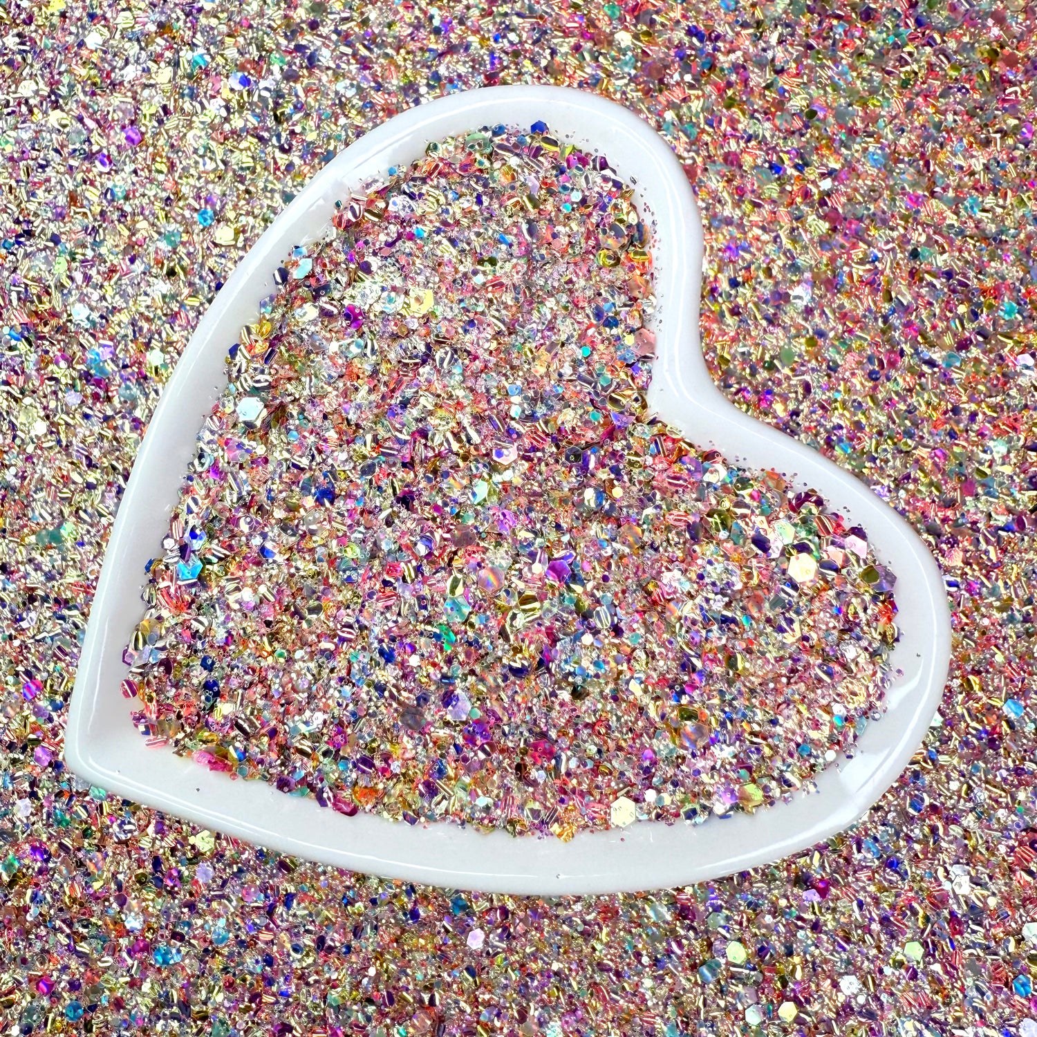 This stunning mix has 6 colors mixed into it. It's a rainbow glitter, ITS BREATHTAKING. This glitter was curated by CST Designs. He wanted this mix, and he sure has a good eye for mixes. It is Beautiful.