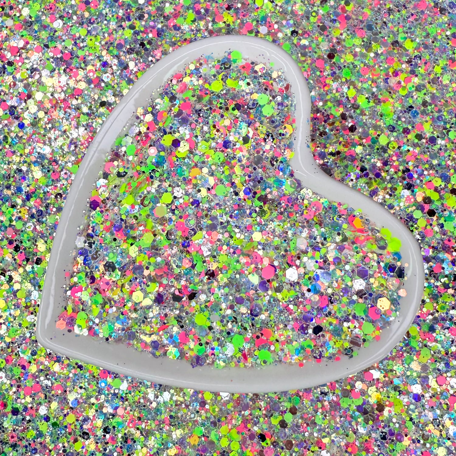 This mix is STUNNING! I can not wait for you to see it in person, It has neon green, neon pink, neon yellow, and holographic . Its gorgeous